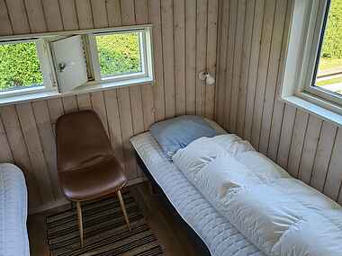 Der er tre gode soveværelser med rigelig skabsplads samt en hyggelig alkove i opholdsstuen og hems hvor ungerne kan boltre sig og indrette deres eget „hjem‟.