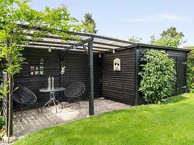 Beliggende nederst ved sommerhuset, finder du en nordøst vendt overdækket terrasse, der tilbyder et svalende tilflugtssted. Her kan du nyde skyggen og roen, mens du lytter til fuglesang og trækker vejret i den friske luft.