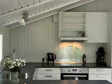 Sommerhuset har plads til op til 6 personer, hvilket gør det perfekt til familier eller grupper af venner, der ønsker at tilbringe kvalitetstid sammen. Indretningen er moderne og lys med fokus på hygge og funktionalitet. Det åbne køkken-alrum er udstyret med alle nødvendige faciliteter, så man nemt kan tilberede måltider og nyde dem sammen ved spisebordet. Det store opholdsområde er indrettet med komfortable møbler, hvor man kan slappe af med en god bog eller en film efter en dag fyldt med aktiviteter.