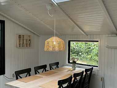 Sommerhuset har plads til op til 6 personer, hvilket gør det perfekt til familier eller grupper af venner, der ønsker at tilbringe kvalitetstid sammen. Indretningen er moderne og lys med fokus på hygge og funktionalitet. Det åbne køkken-alrum er udstyret med alle nødvendige faciliteter, så man nemt kan tilberede måltider og nyde dem sammen ved spisebordet. Det store opholdsområde er indrettet med komfortable møbler, hvor man kan slappe af med en god bog eller en film efter en dag fyldt med aktiviteter.