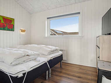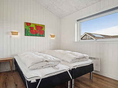Dette rummelige sommerhus på 141 m² giver plads til op til 12 personer. Her er fire soveværelser, to hemse og to badeværelser, hvilket gør det ideelt til store familier eller flere vennepar.