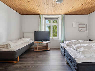 De fleste soveværelser ligger på første sal, hvor der også er et badeværelse og toilet, hvilket giver god komfort og privatliv. Huset er perfekt til både afslapning og samvær.