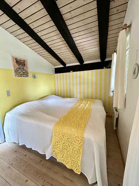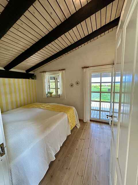 Indenfor er huset rummeligt med i alt 137kvm. Du finder i alt 4 soveværelser indrettet i hver sin personlige og hyggelige stil. Alle værelserne har dobbeltsenge, og i det ene findes også en køjeseng. Derudover findes en babyseng, du altid kan sætte op i det værelse, du ønsker det.