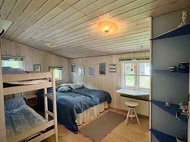Indenfor er huset rummeligt med i alt 137kvm. Du finder i alt 4 soveværelser indrettet i hver sin personlige og hyggelige stil. Alle værelserne har dobbeltsenge, og i det ene findes også en køjeseng. Derudover findes en babyseng, du altid kan sætte op i det værelse, du ønsker det.