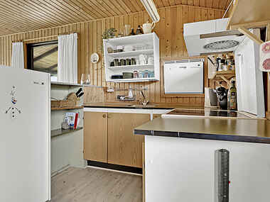 Indenfor åbner huset sig med 4 komfortable værelser, der tilbyder i alt 6 sengepladser. Det velindrettede badeværelse med en berigende bruser indbyder til afslapning. Køkkenet, om end mindre, byder på en hyggelig atmosfære med faciliteter som køleskab, kogeplader, ovn, kedel og fryser. Den dejlige spise- og sofaområde er et sandt hjerte i huset, hvor I kan nyde gode samtaler, spille brætspil og forkæle jer selv med lækker madlavning.