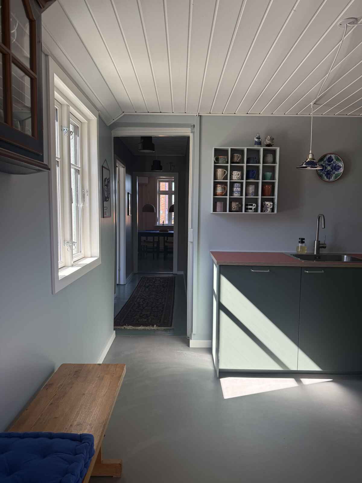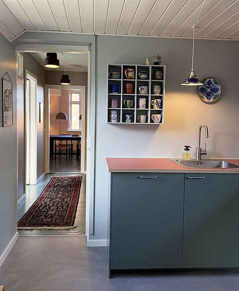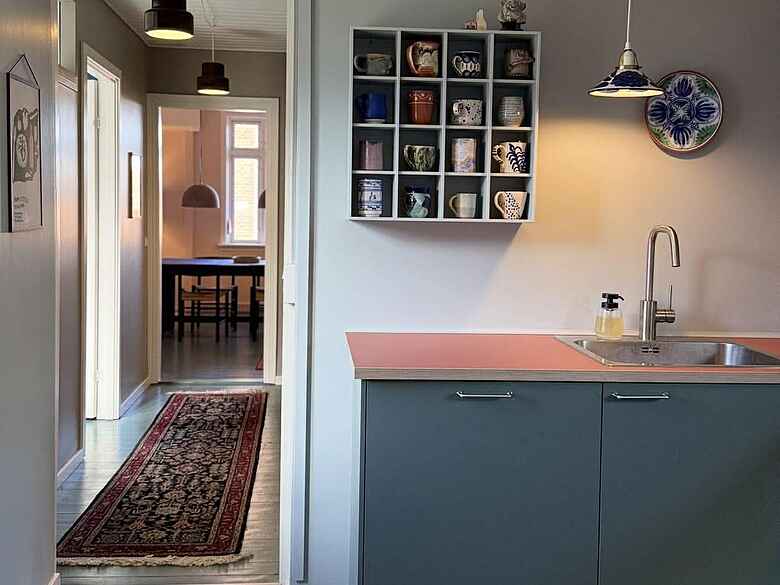 Lejligheden er en del af VILLA SANDVIG – et dejligt byhus, centralt beliggende i Sandvig. Huset består af tre lejligheder, der alle er renoveret i 2026 og indrettet så du føler dig hjemme. Det håber vi du mærker, værdsætter og passer på til de næste. Her er øje for detaljen og alle lejligheder er indrettet med en blanding af nyt og genbrugsfund, ligesom der er gang i farvepaletten. To lejligheder er beliggende i stueplan, mens den tredje lejlighed ligger på 1. sal med udsigt over Hammeren, Østersøen og Sandvigs tage. Lejlighederne udlejes separat, men er I flere familier på ferie sammen, er det ideelt at leje to eller tre lejligheder på samme tid.