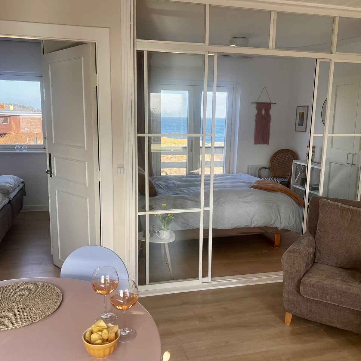 Lejligheden er lys, moderne og indrettet med fokus på komfort og hygge, med en gennemgående ro – ideel til familier, par eller til dig, der ønsker at kombinere hjemmearbejde med naturoplevelser. Lejligheden er istandsat i 2026, helårsopvarmet og fuldt tilgængelig året rundt – perfekt til både sommerferie, efterårsophold, vinterro og forårets lyse dage.