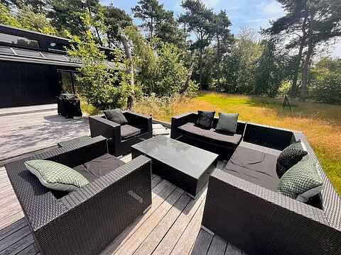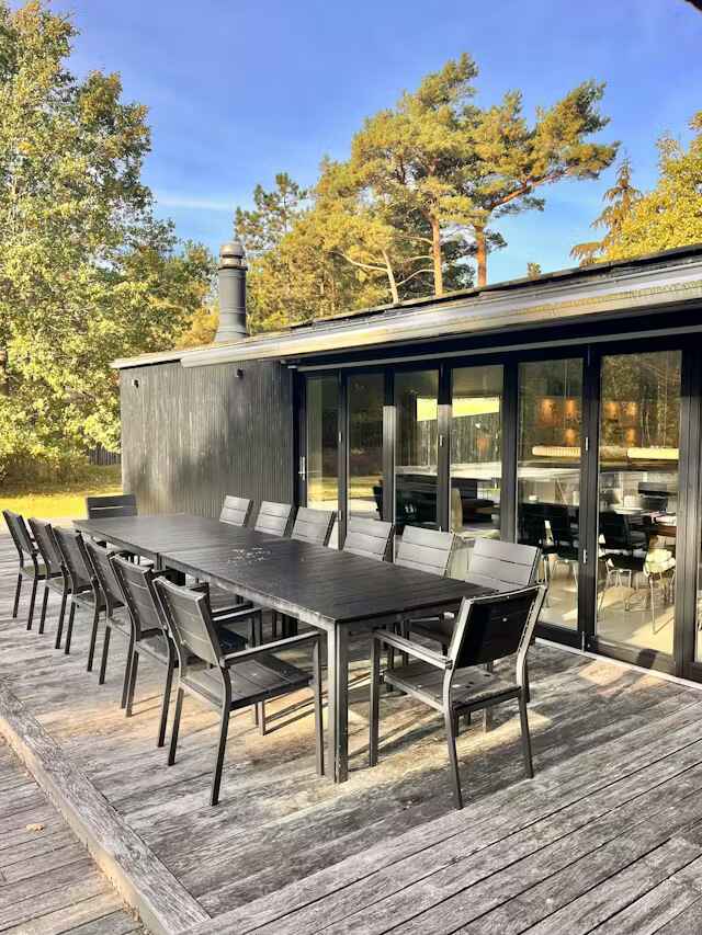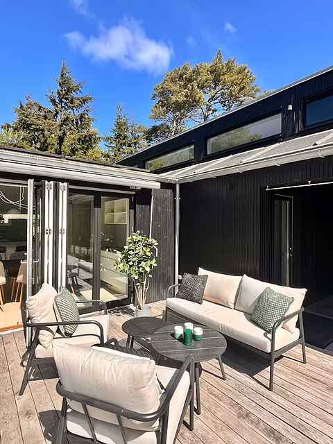 Udendørs faciliteterne omfatter en stor grund på 2400 m2, hvor gamle fyrretræer tilbyder privatliv og skygge. Her kan man nyde udendørslivet, hvad enten man vil solbade på terrassen eller lege i baghaven.