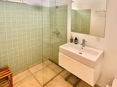 Udendørs faciliteterne omfatter en stor grund på 2400 m2, hvor gamle fyrretræer tilbyder privatliv og skygge. Her kan man nyde udendørslivet, hvad enten man vil solbade på terrassen eller lege i baghaven.