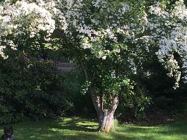 Her må I gerne have hunden med på ferie. Hele grunden er indhegnet med et ca. 60 cm højt hegn.
