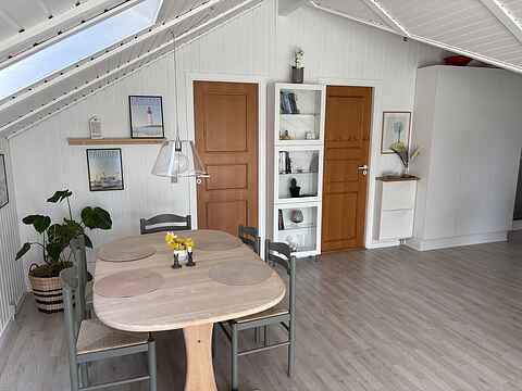 I det hyggelige Skaven Strand finder I dette autentiske sommerhus, beliggende kun ca. 150 meter fra Ringkøbing Fjord. Huset byder på basisfaciliteter for familiens ferieoplevelser i og omkring Ringkøbing Fjord. Huset har et køkken og opholdsstue , som vil blive det naturlige samlingspunkt for ferien. Sommerhuset opvarmes med en energibesparende varmepumpe og pillefyr. Der er overdækket træterrasse hvor I kan nyde måltider. Huset ligger fredfyldt på en stor lukket grund, hvor fjorden kun ligger ca. 150 meter væk. Udlejes ikke til ungdomsgrupper.
