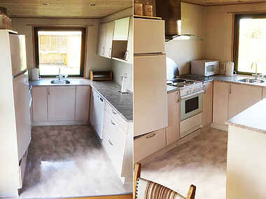 Fint og veludstyret køkken med opvaskemaskine og alt, I skal bruge.