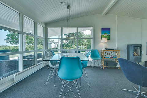 Huset er meget velindrettet. Fra køkkenet har I direkte udgang til terrassen. I stuen er der store vinduespartier med et flot lysindfald og en fantastisk udsigt over området.