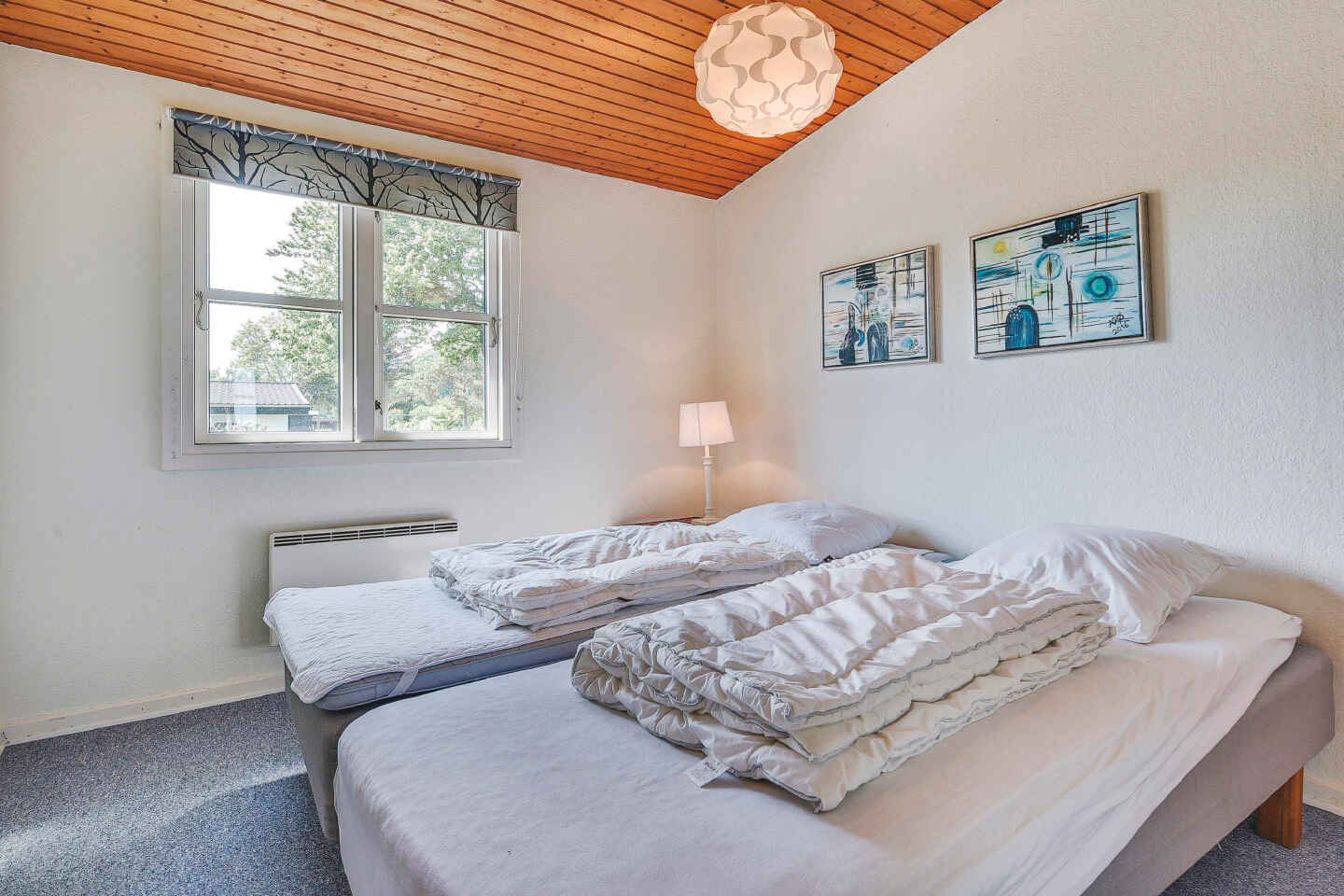 Der er 3 soverum med i alt 6 enkeltsenge, der er skubbet sammen til 3 dobbeltsenge. Barneseng og barnestol til rådighed.