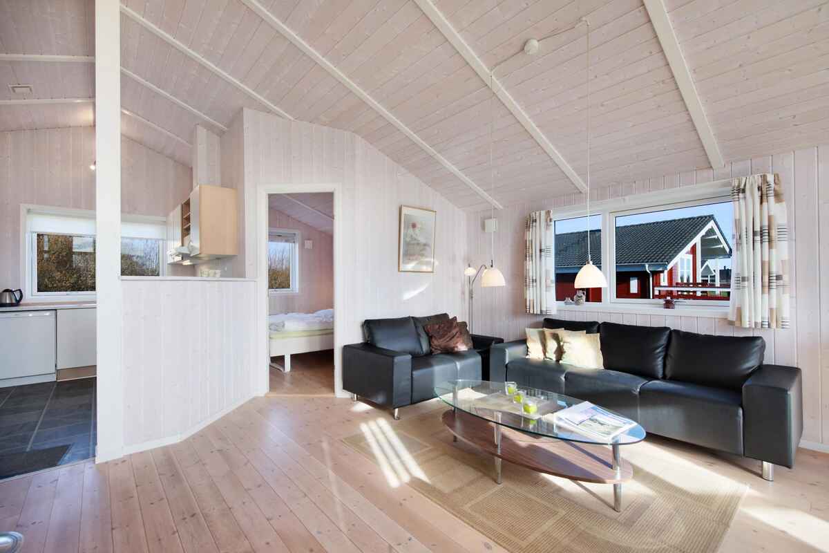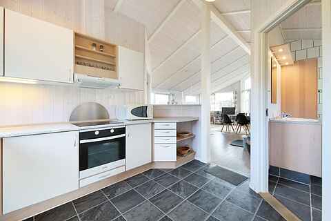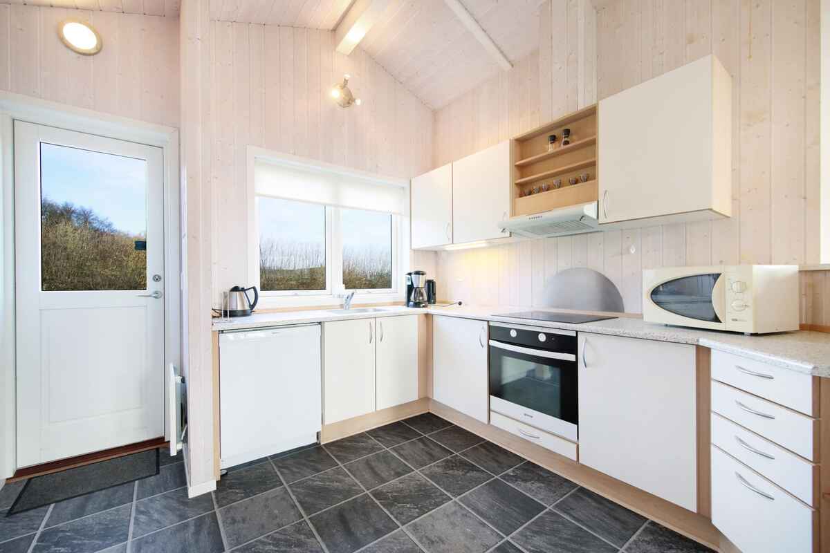 Huset er meget indbydende og lyst med et godt veludstyret køkken med opvaskemaskine.