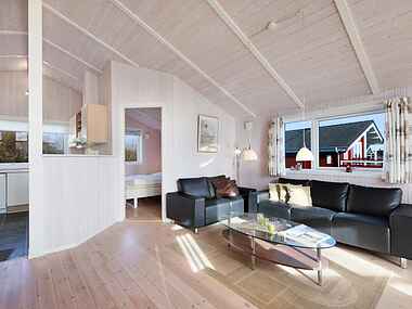 Huset er meget indbydende og lyst med et godt veludstyret køkken med opvaskemaskine.