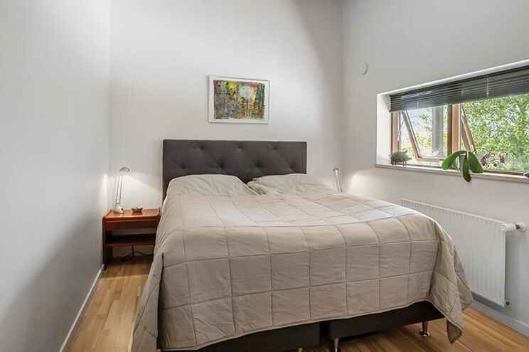 Her er to badeværelser med brusebad og toilet. Huset har også både vaskemaskine og tørretumbler.