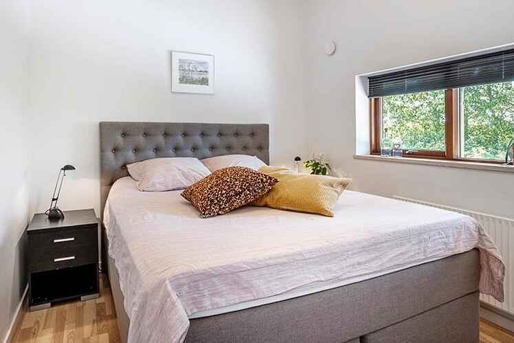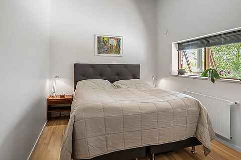 Huset har 3 soveværelser. Det ene er indrettet med en dobbeltseng og de to andre med hver to enkeltsenge. Her er også en barneseng og en barnestol til rådighed.