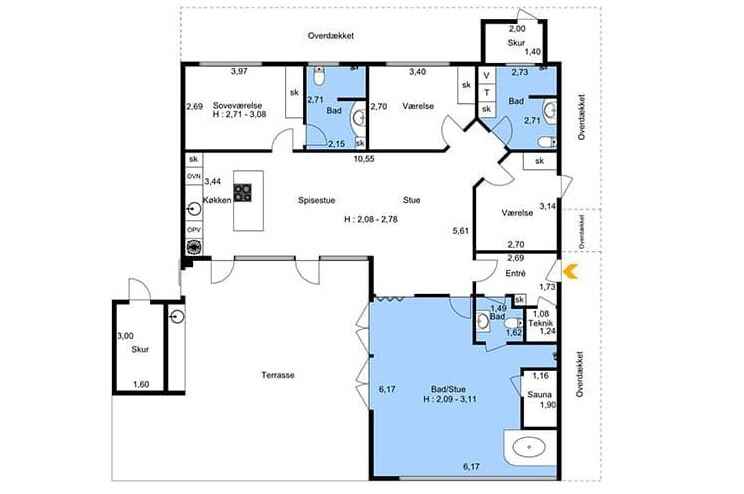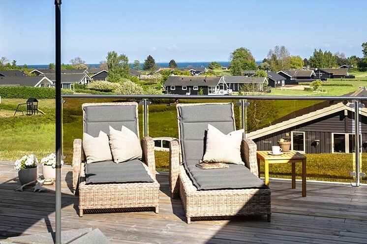 Udenfor er der en dejlig, stor, afskærmet terrasse med havemøbler og liggestole. Her er også et udekøkken, hvis I har lyst til at kaste jer ud i at tilberede maden udendørs.