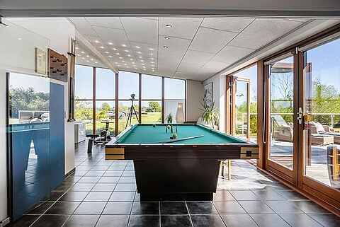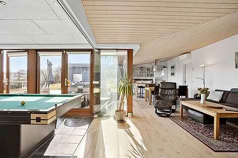 Her er et billardbord, så I måske i familien kan udfordre hinanden til en hygge-dyst. Fjernsyn med danske kanaler og gratis internet.