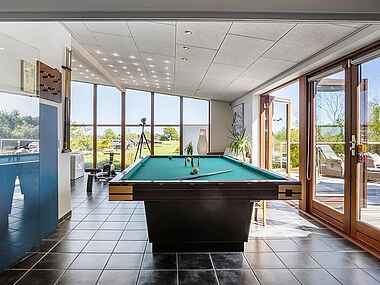 Her er et billardbord, så I måske i familien kan udfordre hinanden til en hygge-dyst. Fjernsyn med danske kanaler og gratis internet.