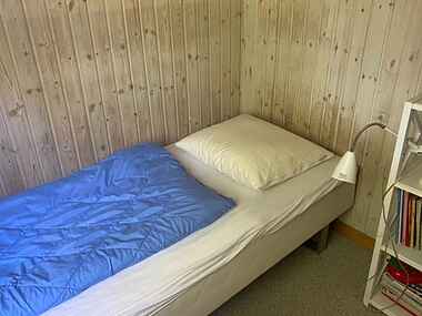 Hyggelig stue med brændeovn og TV med danske kanaler. Her er 3 soveværelser. Det ene soveværelse har en dobbeltseng, og det andet soveværelse en køjeseng til 2 personer. De 2 sidste sovepladser finder I i det tilhørende anneks. Der er en barneseng til rådighed.