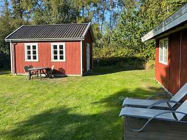 Charmerende feriehus med et lille, tilhørende anneks på en 1.200 m² stor grund. Huset ligger kun 300 meter fra stranden. Gratis internet.