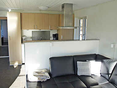 Køkkenet ligger i forbindelse til stuen.