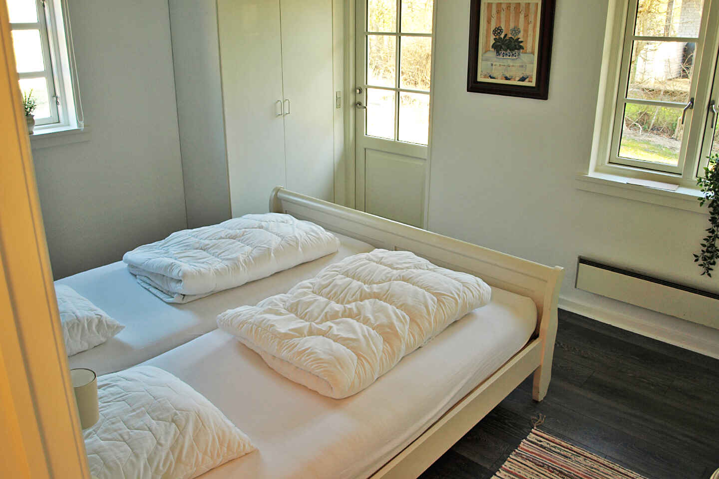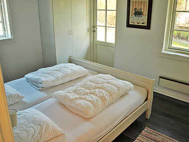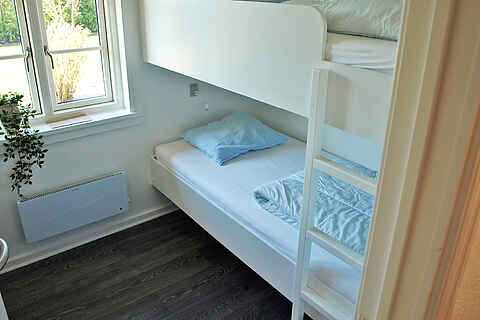 Der er 3 soveværelser. 2 værelser med en dobbeltseng i hvert og 1 værelse med en køjeseng til 2 personer.