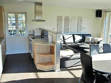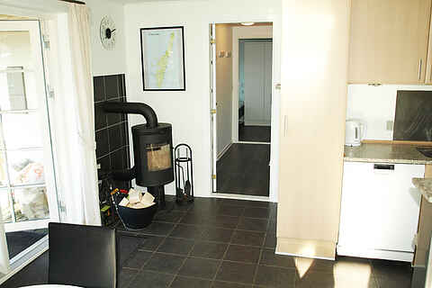 Køkkenet ligger i forbindelse til stuen.