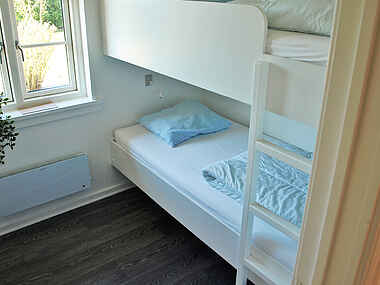 Der er 3 soveværelser. 2 værelser med en dobbeltseng i hvert og 1 værelse med en køjeseng til 2 personer.