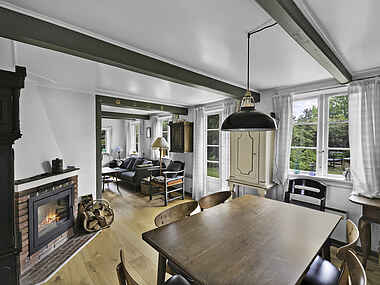 Med en bevidsthed om at bevare husets sjæl og alder er der gennemført omhyggelige renoveringer, herunder et nyt køkken og fornyede trægulve, der smukt forener det gamle med det nye.