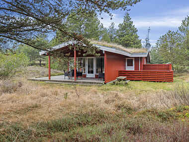Det 64 m² store sommerhus rummer plads til fem personer og er indrettet til et ophold, hvor ro og nærhed til naturen er i centrum. Den åbne planløsning giver en afslappet atmosfære og gør det let at være samlet, uanset om dagen foregår ude eller inde.