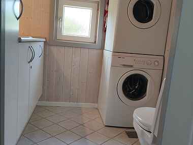 Listen over udstyr i huset, herunder køkkenet, er lang. Her er opvaskemaskine, køle-fryseskab, ovn, mikroovn, vaskemaskine, tørretumbler samt køkkenudstyr til 12 personer.