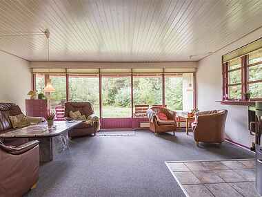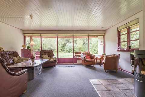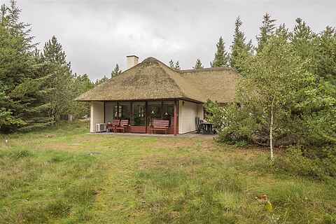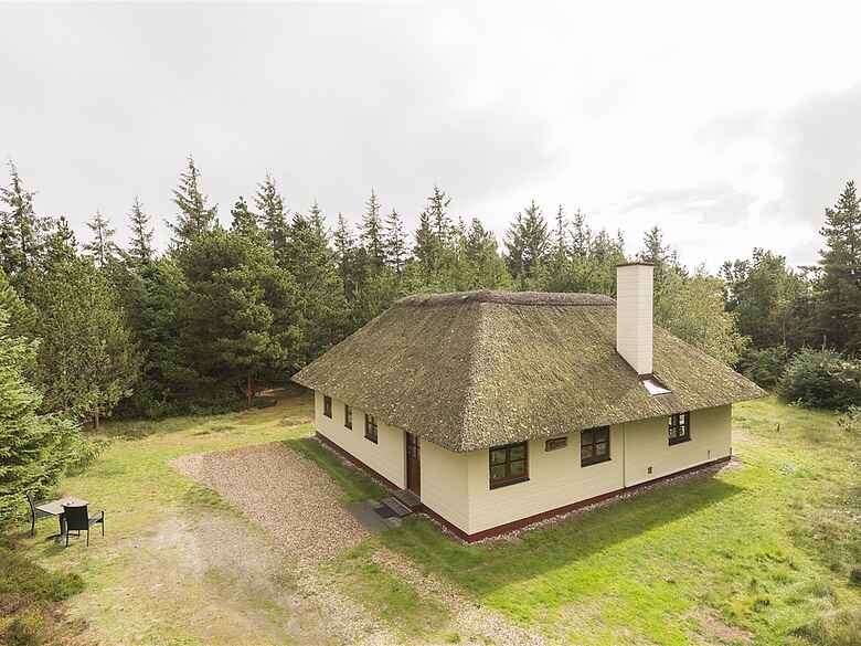 Stenhus 95 m2 med stråtag. Grund: 3.356 m2 stor hede-fyrtræs bevokset naturgrund.