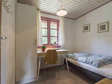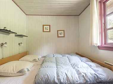 Boligen rummer fire soveværelser med i alt syv sovepladser, et badeværelse samt gæstetoilet. Køkkenet ligger i åben forbindelse med stuen, hvor opholdsrummet samler huset. Indretningen er enkel og funktionel, så ferien kan bruges på oplevelser frem for praktik.