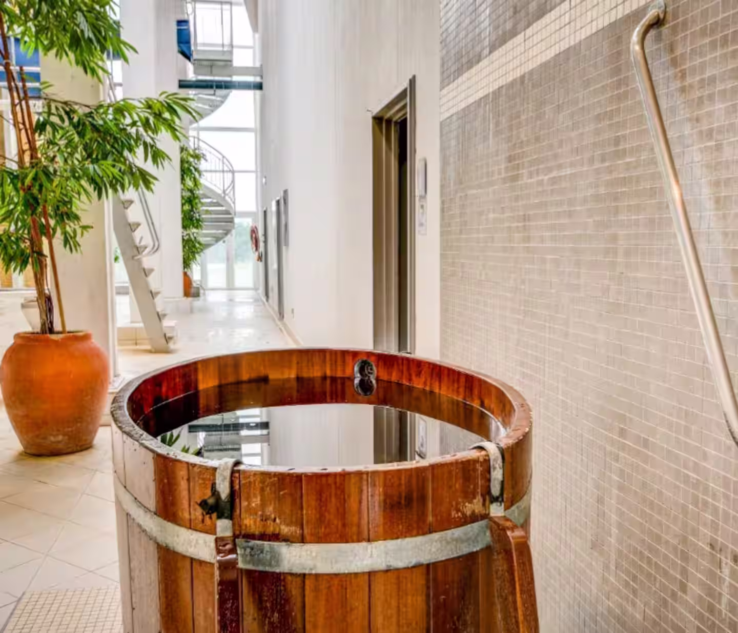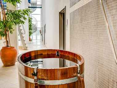 Der er to badeværelser med spabad og lukket massagekabine. Det giver mulighed for restitution og afslapning, uanset om dagen har budt på strand, natur eller aktiviteter.