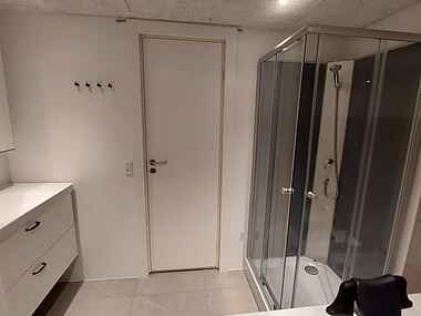 Der er to badeværelser med spabad og lukket massagekabine. Det giver mulighed for restitution og afslapning, uanset om dagen har budt på strand, natur eller aktiviteter.