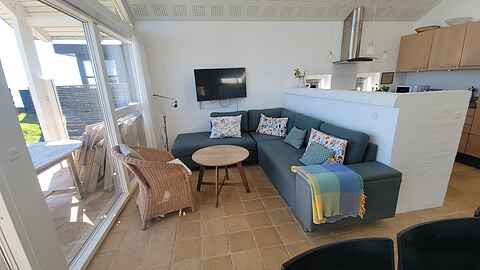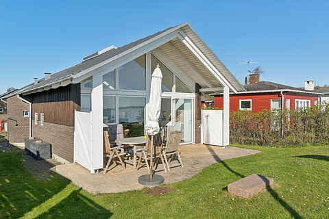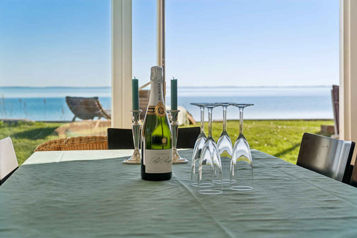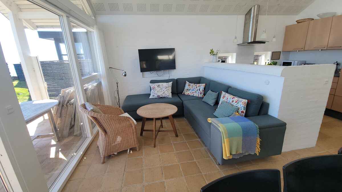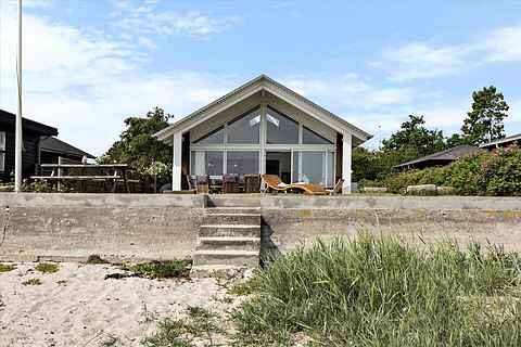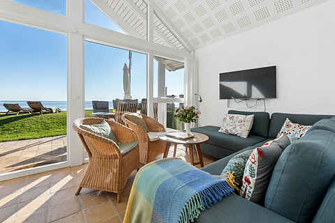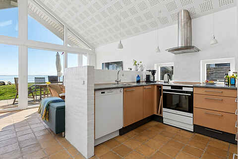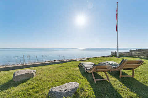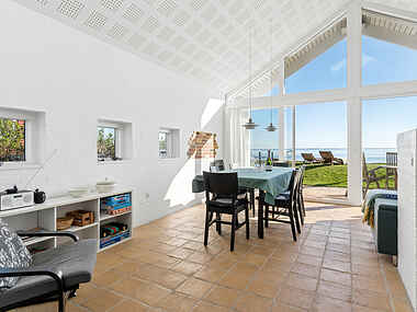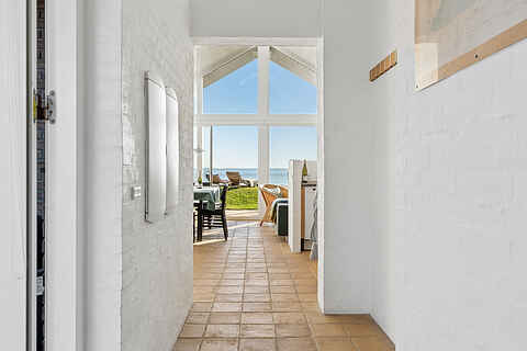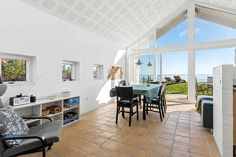 Dette skønne sommerhus ligger direkte ved stranden med uhindret udsigt over havet – tættere på vandet kommer man ganske enkelt ikke. Fra både stue, terrasse og have er der panoramaudsigt over bølgerne, horisonten og de skiftende himle, som giver en helt særlig ro fra morgen til aften.