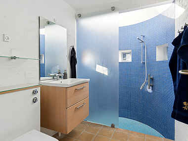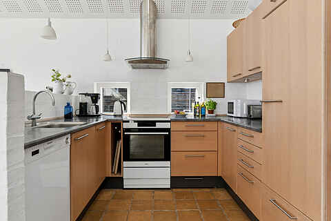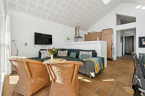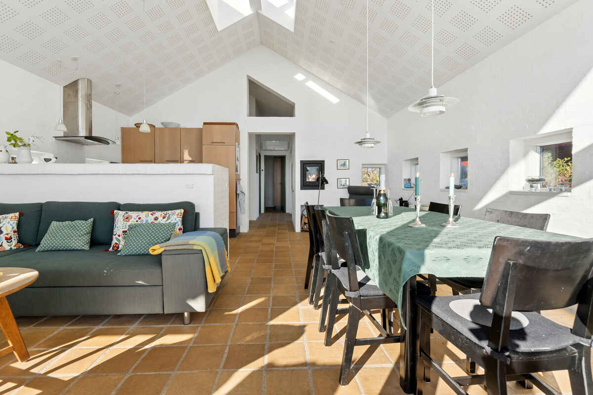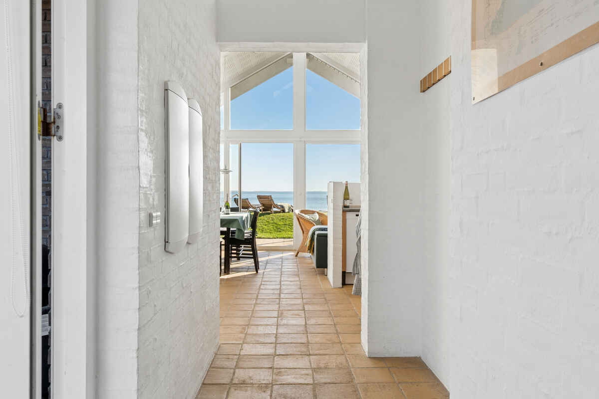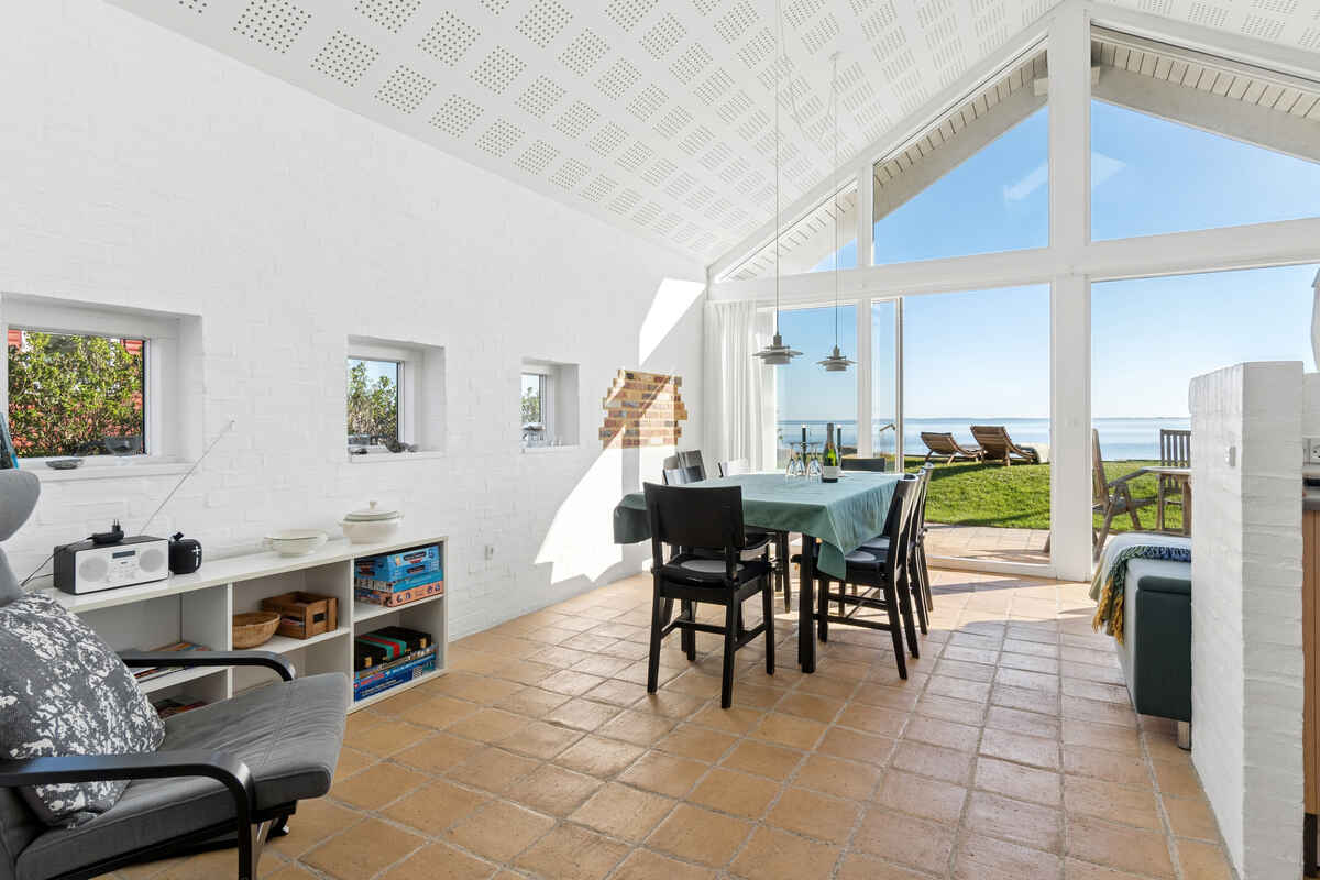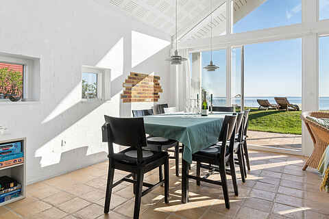 Huset er lyst og indbydende med store vinduespartier, der lukker naturen helt ind og skaber en flydende overgang mellem inde og ude. Her kan du nyde morgenkaffen med havudsigt, lange frokoster i solen og aftener med solnedgangens farver som kulisse.