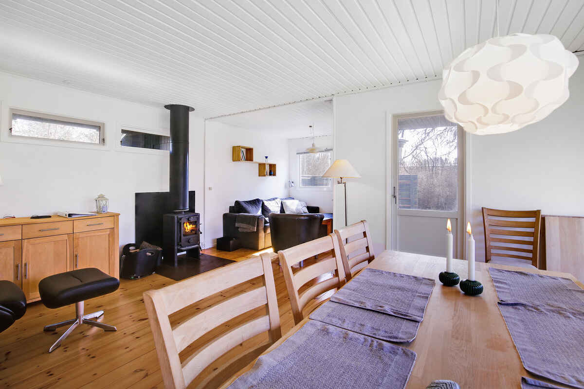 Dette sommerhus er udstyret med et veludstyret køkken, hvor du finder alt fra keramiske kogeplader til en praktisk opvaskemaskine. Badeværelset byder ikke kun på en forfriskende bruseniche og toilet, men også en praktisk vaskemaskine. Indendørs underholdning er også dækket med trådløst internet, en smart højtaler, tv med Chromecast og en dvd-afspiller. Den rummelige stue åbner op til en solrig terrasse, der omfavner østlige, sydlige og vestlige solstråler og er møbleret til afslapning og udendørsspise. Hold dig varm om aftenen med den knitrende brændeovn.