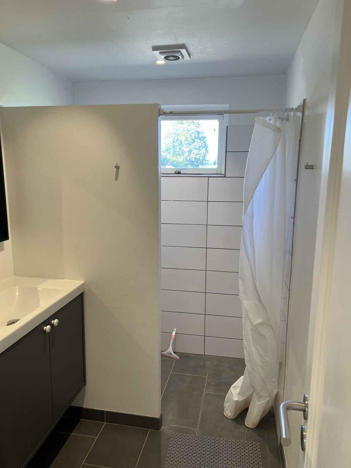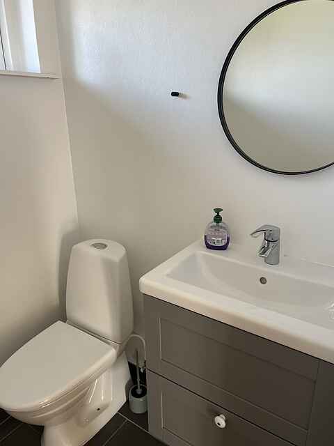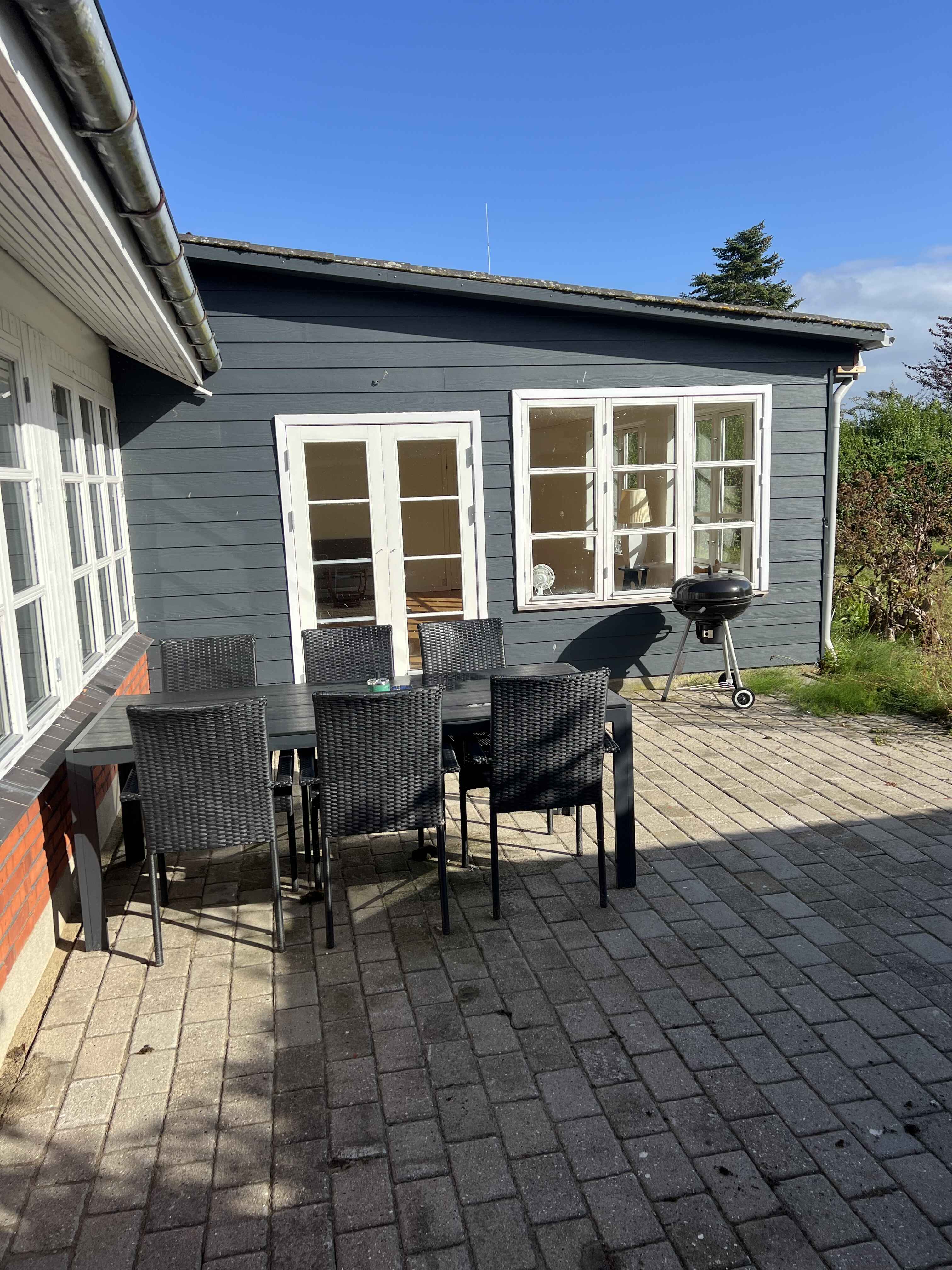 Udenfor finder I en privat have, hvor der er plads til leg, afslapning og måltider i det fri. Her står både grill og havemøbler, så sommerdagene nemt kan nydes udendørs fra morgen til aften.