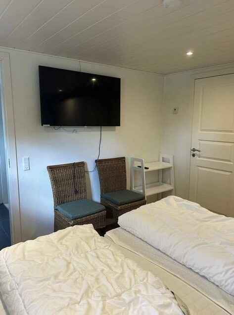 God rummelig stue med brændeovn og gulvvarme. Her er med danske, tyske og svenske kanaler, og her er også Chromecast TV og gratis internet. For børn og barnlige sjæle er der en PC spillekonsol.