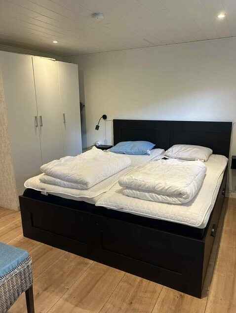 Huset har 3 fine soveværelser – to med dobbeltsenge og et med to enkeltsenge. Der er skabe i alle værelser.