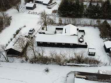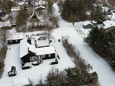 Udenfor er der havemøbler, liggestole og en grill og en stor åben terrasse på 100 m2 samt p-plads til bilen.