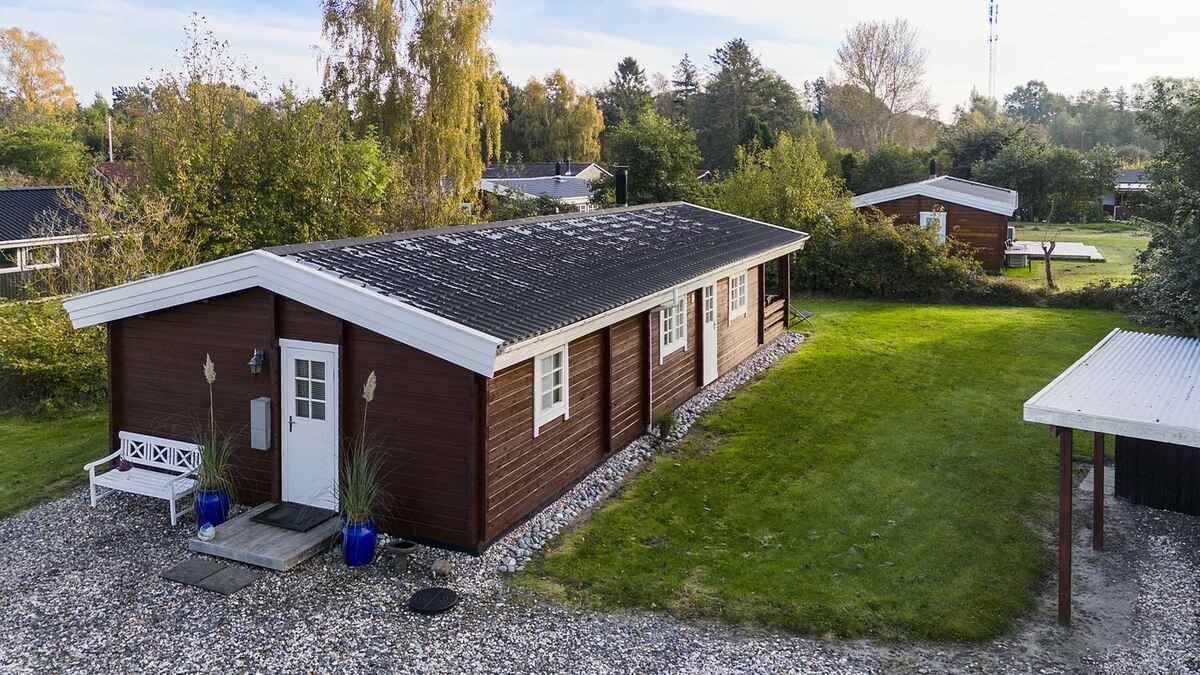 Charmerende bjælkehus fra 2002 med tre soveværelser, badeværelse med sauna og et lyst stue-køkken-område i åben forbindelse. Fra stuen er der udgang til verandaen, hvor ro og natur kan nydes. Beliggende på en fredelig grund for enden af en lukket vej og kun 300 meter fra Ulvshale Strand. Oplev Møns smukke natur og den hyggelige by Stege med caféer og specialbutikker. Der kommer nyt køkken.