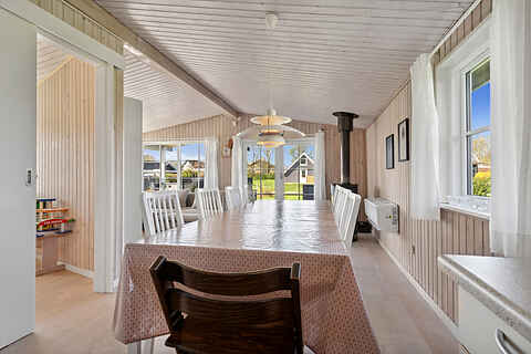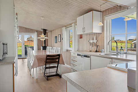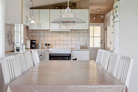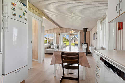 Slap af i det komfortable opholdsområde, hvor I kan samles omkring en hyggelig pejs eller nyde en god film sammen. Det veludstyrede køkken giver jer mulighed for at tilberede lækre måltider, som I kan nyde sammen ved spisebordet.
