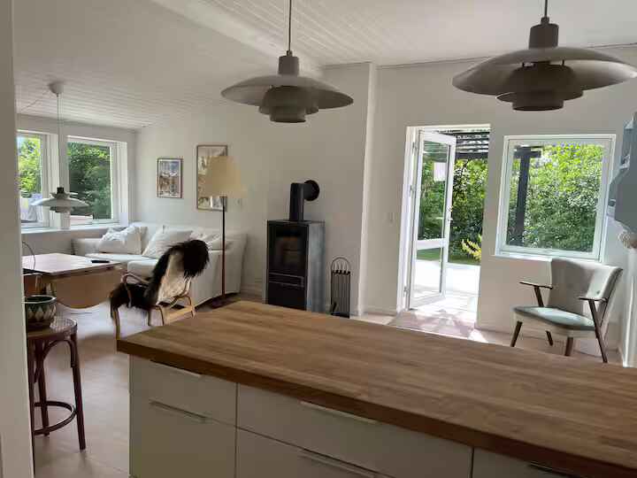 Tisvildeleje ligger en kort cykeltur væk og byder på caféer, små butikker og en livlig sommerstemning. Kombinationen af natur, strand og byliv gør området særligt attraktivt.