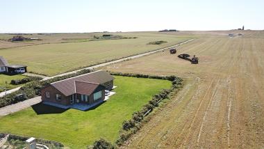Efter at have hentet nøglen på kontoret i Vrist starter en smuk tur af små snoede veje til Bovbjerg. Allerede på lang afstand tårner Bovbjerg Fyr sig op. I det smukke, bakkede landskab er man ikke i tvivl om, at man nærmer sig noget unikt. Parker bilen i carporten og start udpakningen. En dejlig entré byder velkommen, og allerede her er man ikke i tvivl om, at dette hus og dens beliggenhed er noget ganske særligt. Huset er 150 m2 og har 4 store soveværelse (1DS, 1DS, 1DS, 2ES) med god skabsplads i alle soverum. 2 af soverummene har udsigt til Vesterhavet. Træd ind i den hyggelige opholdsstue som er udstyret med helt nye, moderne møbler. Der er masser af siddepladser i de flotte lædermøbler, smart-TV, som har indbygget danske og tyske Tv-programmer, radio og mulighed for streamings tjenester, et flot spisebord med siddepladser til alle og den unikke panoramaudsigt til Vesterhavet fuldender oplevelsen. En varmepumpe søger for, at alle kan holde varmen på alle årstider til en billig pris. Åbent, godt udstyret køkkenhjørne med alt i hvidevarer, opvaskemaskine, mikroovn, komfur med keramiske kogeplader og køleskab med fryseboks. Nyd et glas rødvin når der laves mad i dette nye køkken. Huset har praktiske trægulve i såvel opholdsrum som soverum. Stort badeværelse md gulvvarme, toilet, håndvask, bruseniche og 2-personers spabad. Ekstra badeværelse med gulvvarme, toilet, håndvask og bruser. Baggang med vaskemaskine, tørretumbler og ekstra bordplads. Ikke ryger hus. Max 1. husdyr er tilladt. Har man en el-bil eller hybrid så findes der et CEE-ladestik ved huset.