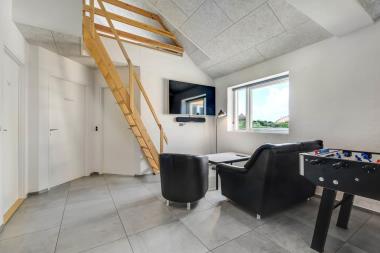 Fuldstændig unikt og fantastisk beliggende, nybygget luksushus. Huset er bygget ved Bovbjerg Klint og har udsigt over Vesterhavet og til Ferring Sø. Ved den danske Vestkyst findes ikke et lignende hus, hvilket gør dette moderne liebhaverbyggeri til noget ganske særligt. Der er bl.a. pool, spa, sauna, Udendørs spa, gratis WLAN og aktivitetsrum med bl.a. bordtennis, billard og bordfodbold. Et hus med plads til 32 personer, så hvad enten det er flere familier som rejser sammen eller om det er kolleger, så er der rigeligt plads til en rolig stund, en plads i solen eller konkurrencer i aktivitetsrummet.